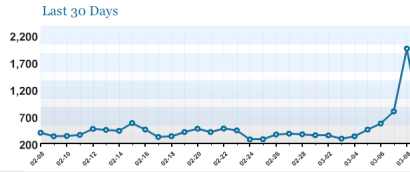Makes the rest of my days look puny, although I’ve been hovering around 300-500 page views per day this past month. Amazing when I think about the first month, when I thought 10 page views was a big day. Right now, my run rate is likely 250,000 page views a year. Not a small number.