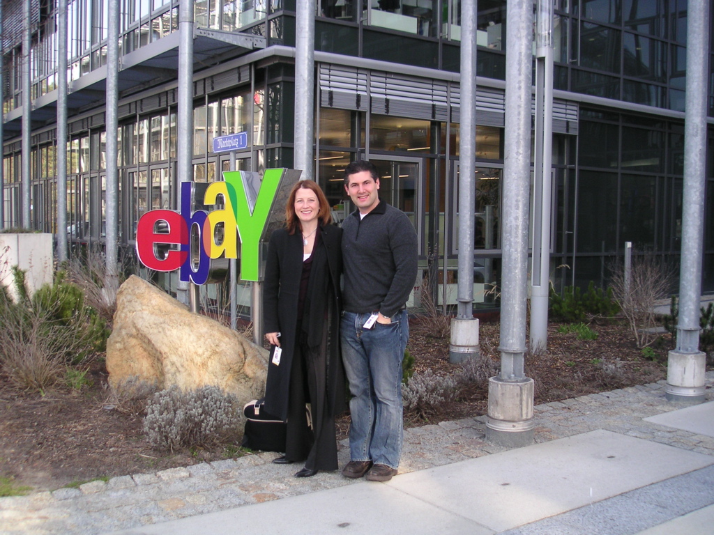 We’re getting all set up for a day of meetings, but I thought I’d post a quick picture. It’s Lara Housser & myself, in front of the eBay sign.