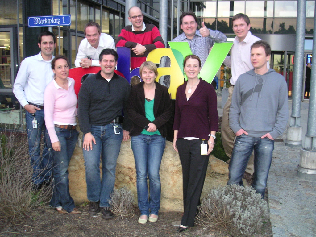 After a full day of meetings about eBay Express, what better way to wrap up the day than with a group photo of the eBay Express DE team in front of the eBay sign.