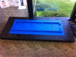 Once the base was dry, I carefully measured out ten 32×32 blue LEGO plates, and glued them down to the base. Once the glue was dry, I screwed them down to the base to ensure no issues. I used the first few rows of bricks to ensure that I had the plates properly spaced, since there is an interesting but necessary 0.2 mm spacing that you have to account for with LEGO bricks.