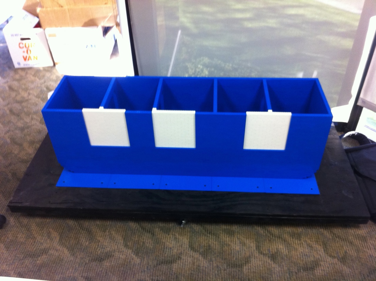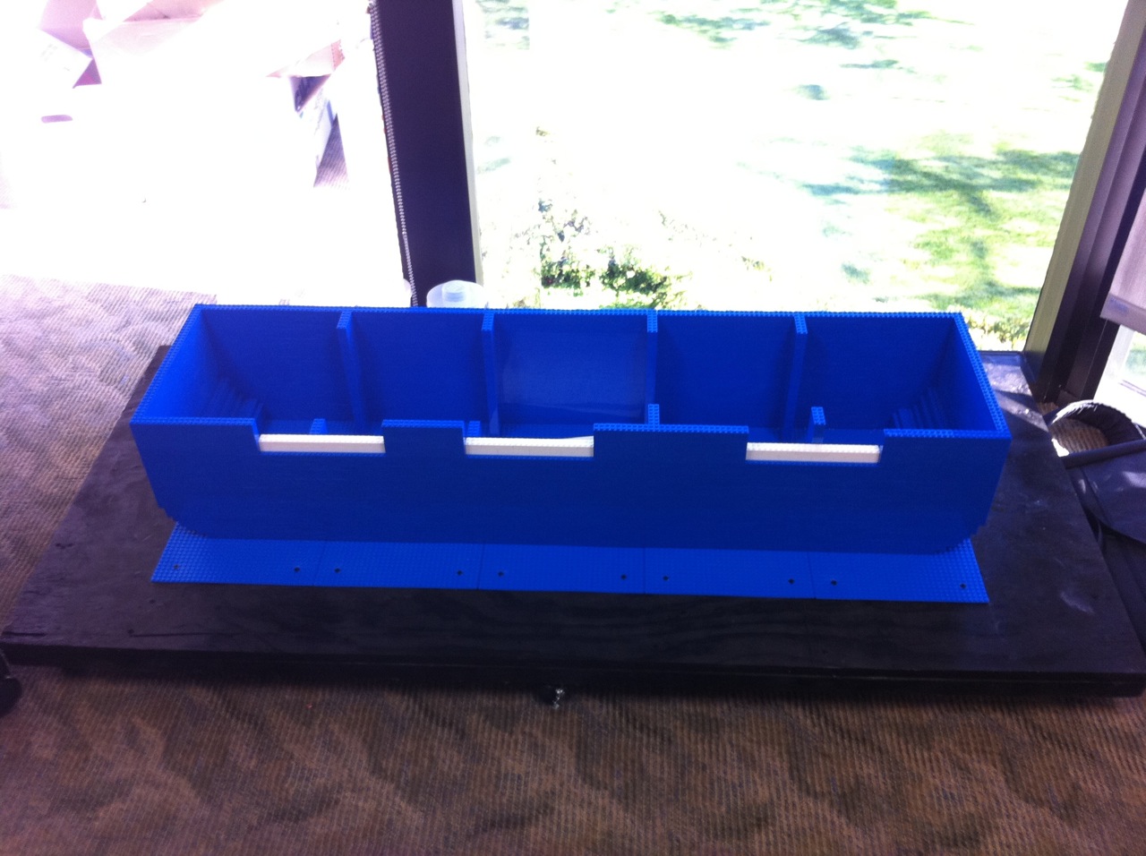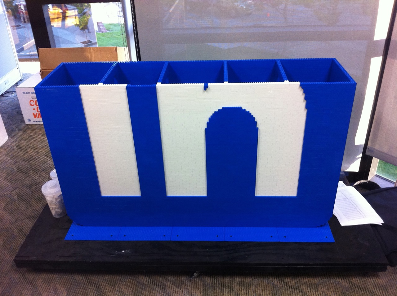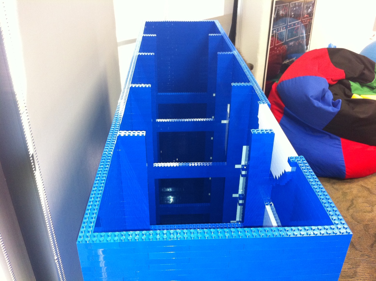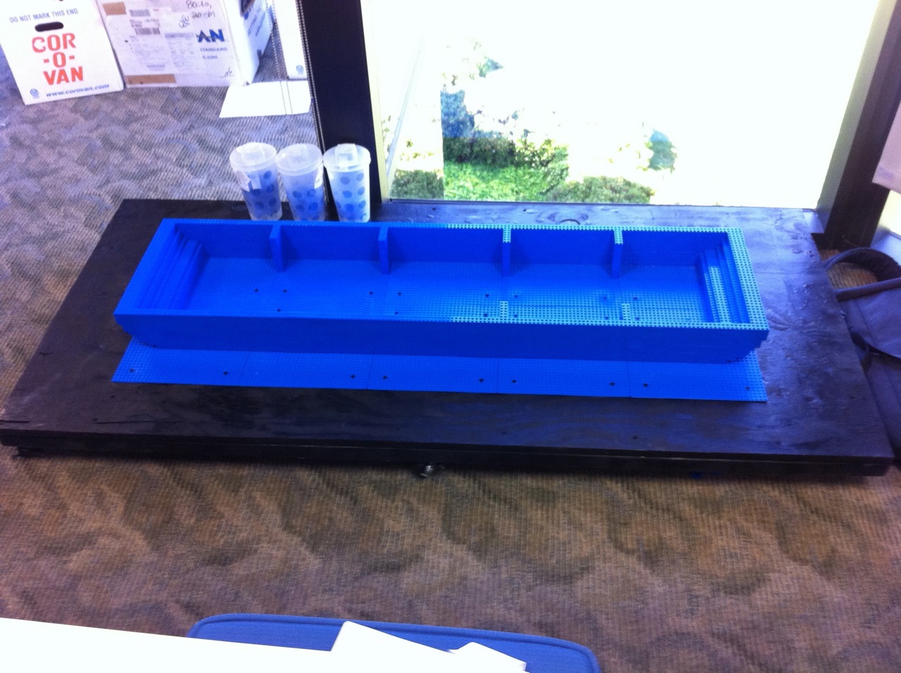 It turns out ordering 8,000 bricks (including over 5,500 2×8 blue bricks) is not a trivial exercise. LEGO.com blocks you at 999 bricks per type, and chokes over a certain dollar amount. Instead, after calling LEGO, it turns out that you can place an order via fax, which is what we did. In case you are wondering, the Danish don’t seem to have a concept of a “volume discount” or “corporate discount”. Either that, or they knew I’d pay for the bricks.