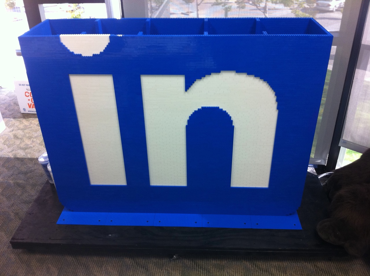 At the same time, I thought about how LinkedIn didn’t have any sort of large sign or sculpture in its entrance. The idea for doing the LinkedIn logo in LEGO bricks was born. I thought I’d be able to get it done in a single InDay – the one day per month LinkedIn has set aside for innovative projects & efforts. That proved to be a wildly optimistic assessment of the level of effort involved.